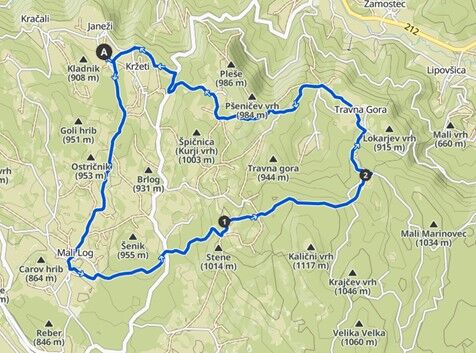 Iz Malega Loga bomo pot nadaljevali po slikoviti gozdni poti proti Kamnemu Griču, kjer nas bo na vrhu pričakal naslednji postanek za okrepčilo. Tisti, ki jim bo poti dovolj, se bodo lahko od tu vrnili nazaj proti Kržetom in nato v Petrince. Najbolj vztrajni pa bodo pot nadaljevali čez Kaliče proti Domu na Travni gori, kjer je prav tako predviden postanek. Sledil bo povratek proti Gori.