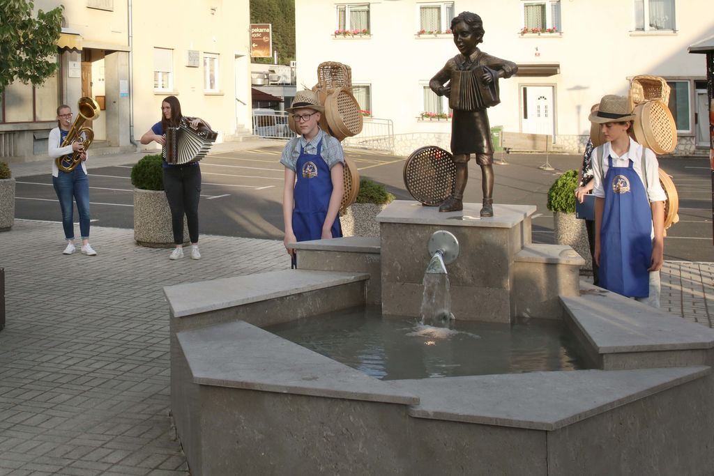 V torek, 12. julija je v središču Sodražice potekal sklepni del projekta Sprehod skozi naše trge. V okviru projekta je bil lani prenovljen kostanjev park, kamor je bil skupaj z zgodbo preseljen tudi kip psoglavca. Letos pa je novo podobo, s kipom fantiča s harmoniko in sitom ob nogi, dobila tudi fontana na trgu. Avtorica skulpture je akademska kiparka Katja Majer, ki živi in ustvarja v Mariboru. V precej čustveni predstavitvi, saj njene korenine segajo tudi v ribniško dolino, je povedala, da gre za spomenik vsestransko dejavnemu in bistremu prebivalcu sodraške doline. Da je v kipu ponazorjena radoživa narava naših prebivalcev, pa tudi marljivost in iznajdljivost. Skupaj z županom mag. Blažem Milavcem ter mladima krošnjarjema Luko in Stašem so tako otvorili prenovljeno fontano. Dogodek sta glasbeno obogatili članici Kluba harmonikarjev Urška, Neja in Lenča Debeljak.