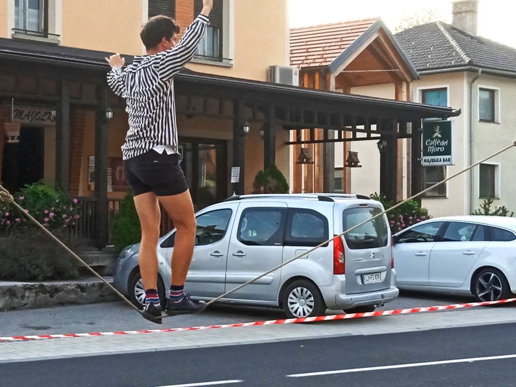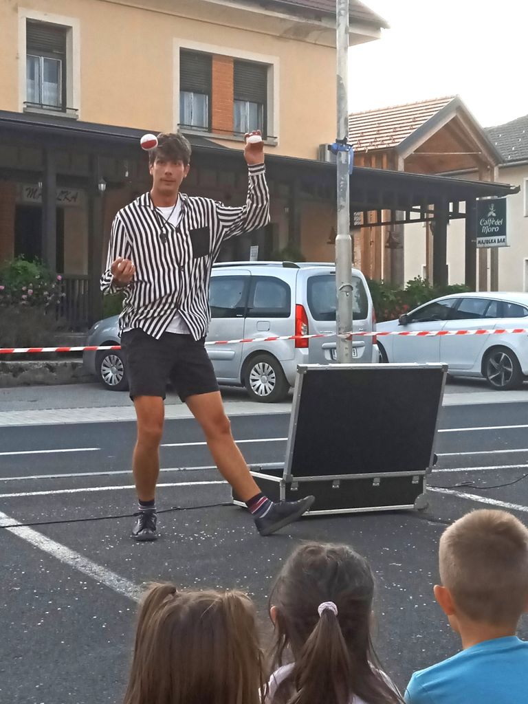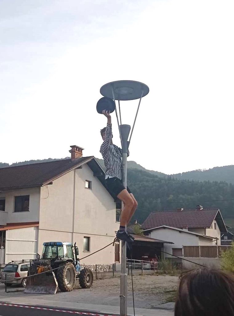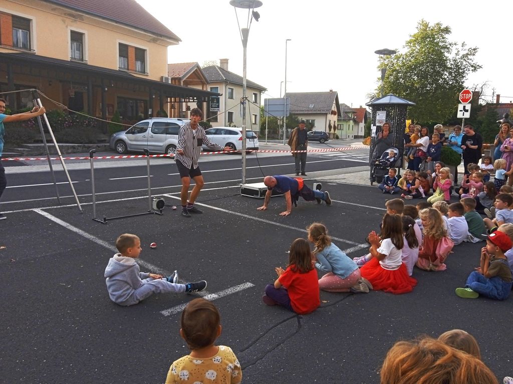 Na trgu v Sodražici se je odvila cirkuška predstava Andreja Tomšeta Po klobuk. Andrej nas je zabaval, medtem ko se je med plesom kot za šalo preoblekel, sproščeno žongliral in se nazadnje ob pomoči pogumnih očkov po vrvi sprehodil po klobuk, ki je tičal visoko na ulični svetilki.