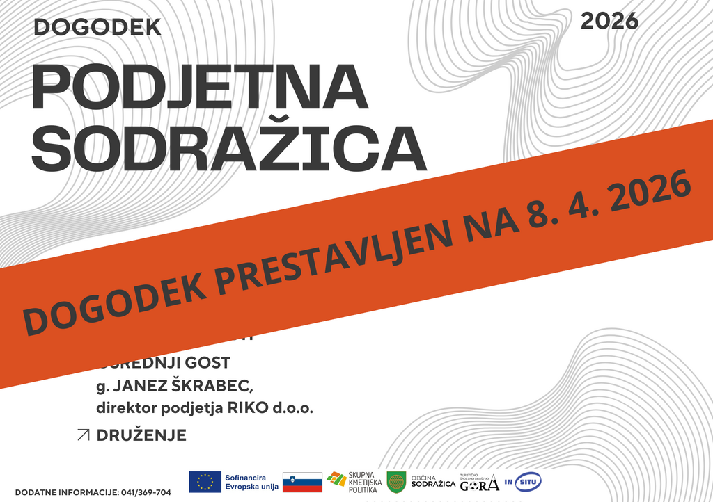 Obveščamo vas, da bo dogodek Podjetna Sodražica potekalo v novem terminu, in sicer v sredo, 8. aprila 2026, ob 18. uri, v Maticovi etno hiši, Ravni Dol 1a, Sodražica.