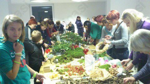 Ni presenetljivo, da so pri ustvarjanju bile udeleženke le ženske, nekatere pa so s seboj pripeljale tudi otroke. Ko so prišle prve ustvarjalke, so si izbrale najljubši material in pričele z delom. Uporabljale so naravne materiale (trse, storže, mah, želode, drevesno lubje), ki smo ga predhodno nabrale članice gasilskega društva, nekaj materiala pa so imele s seboj (svečke, okraske). Ženske so si lahko izmenjale ideje, si med seboj pomagale, poklepetale o novostih. Družba je bila zelo raznolika: od najmlajših in mladine, do starejših krajank in članic drugih društev (PGD Obrež, TD Središče ob Dravi, PGD Vitan – Kog).