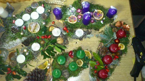 Zbranih nas je bilo okrog 50. Ob pecivu (nekaj so ga spekle tudi obiskovalke), kavi, čaju, kuhanem vinu in dobri družbi pa je tudi čas hitro minil. Nastali so čudoviti izdelki, takšnih in drugačnih oblik in velikosti: veliki, okrogli, zlati, zasneženi … Venčke smo si ogledali, podali svoja mnenja ter jih seveda tudi fotografirali.