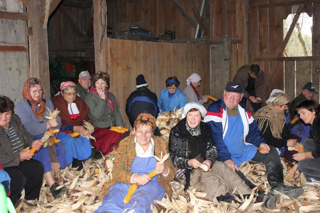 Vsi smo lepo kožühali, dečki so nosili koruzo v koružjok. Da je bilo bolj luštno, so nam zaigrali mladi dečki Trio Lipa in sosidova Maja.