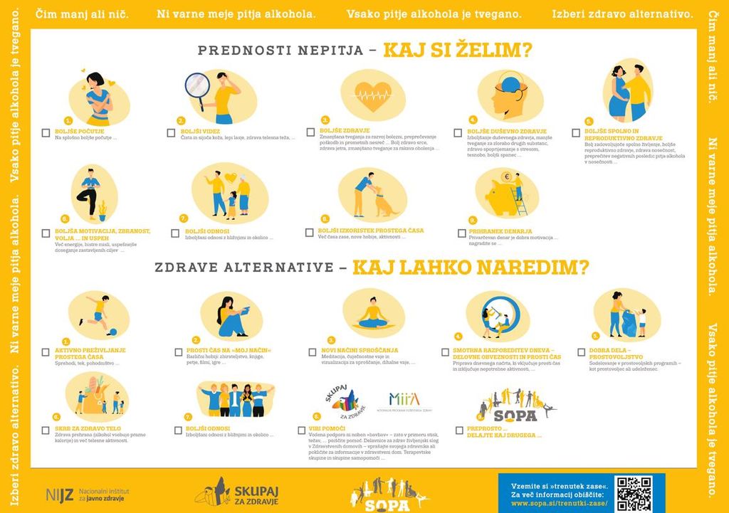 Nacionalni inštitut za javno zdravje preko programa Skupaj za zdravje, ki se izvaja v Centrih za krepitev zdravja in Zdravstveno vzgojnih centrih v Zdravstvenih domovih po Sloveniji, je za medije pripravil prispevek, s katerim opozarja na tveganja pri pitju alkoholnih pijač v vročih poletnih dneh, še posebej pri nekaterih skupinah ljudi, kot npr. mladostnikih, pri katerih se možgani šele intenzivno razvijajo.
