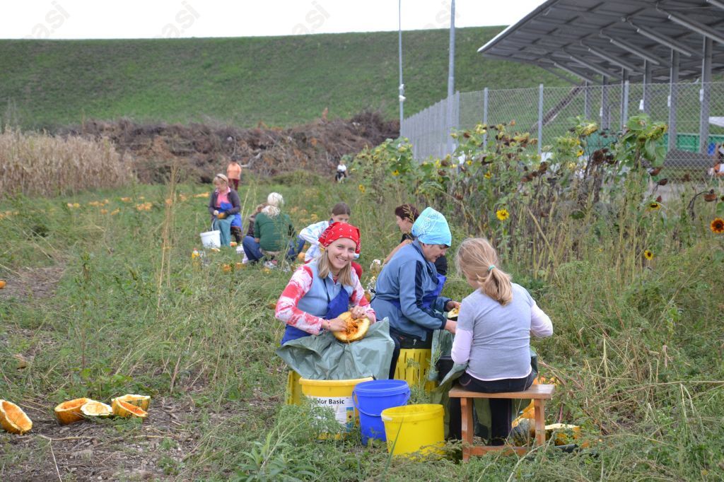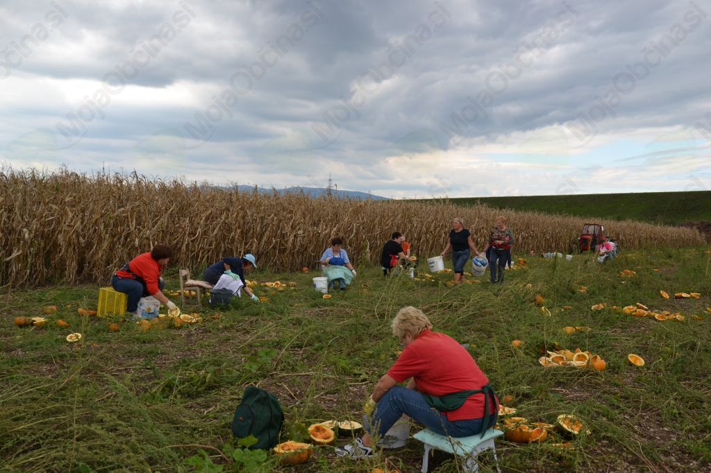 Jesen je pred vrati in s tem tudi jesenska opravila. Ker smo se članice Društva Ajda Starše spomladi tako pogumno lotile sajenja buč in čez leto tudi kar se da skrbele za njih, nas je za uvod v jesenski čas seveda najprej čakalo trebljenje našega bučnega zaklada.Buč je bilo kar nekaj in tako smo ugotavljale, koliko časa
