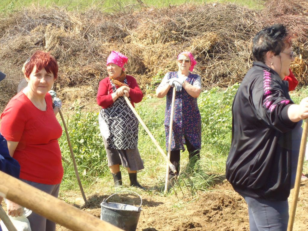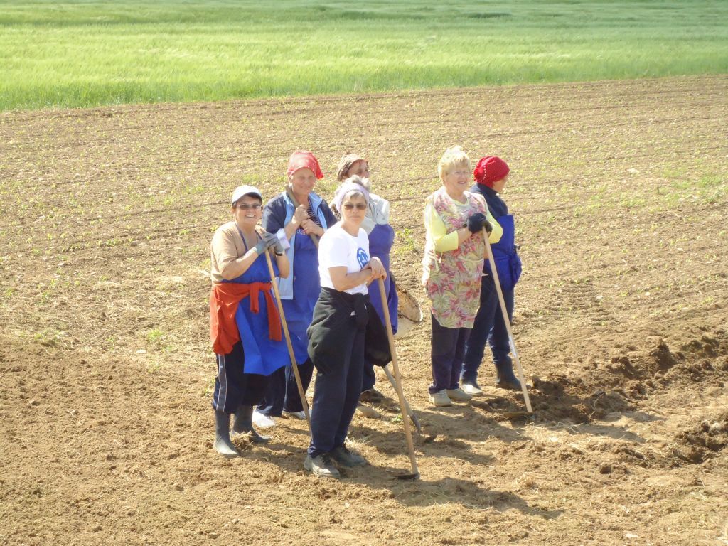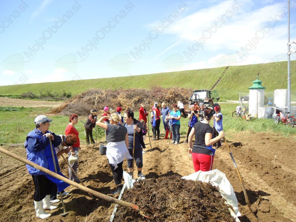 Motike so bile nabrušene, vile pripravljene, okrepčila ni manjkalo, bilo je potrebno samo še organizirati delo. In veste, ko se dela loti trideset žensk hkrati, včasih ni enostavno. »Boš ti tros’la gnoj? Kera bo metala košice in kera bo zaglihavala? Čuj, malo bol na gosto bo treba, ti pa nena šparaj z gnojom. Ke za pit pa nič nemo dob’le?!« Tako se je to slišalo, a ko je vsaka imela svoje delo, je vse steklo kot namazano in delo je bilo hitro opravljeno. Kot je bilo v navadi, smo tudi me po opravljenem delu sedle in se okrepčale. Vsaka je nekaj prinesla in tako ničesar ni manjkalo le kavico smo si potem privoščile na moderen način, šle smo v gostilno. In če verjamete ali ne, veste, da so bile buče že včeraj velike kot žoge.