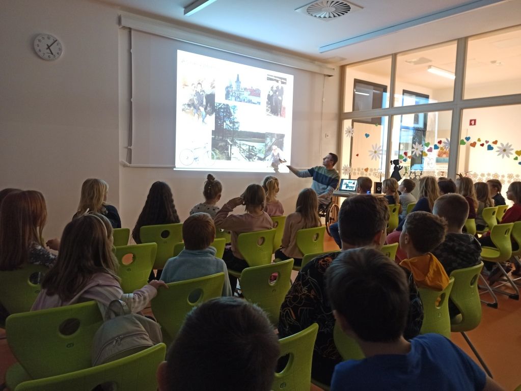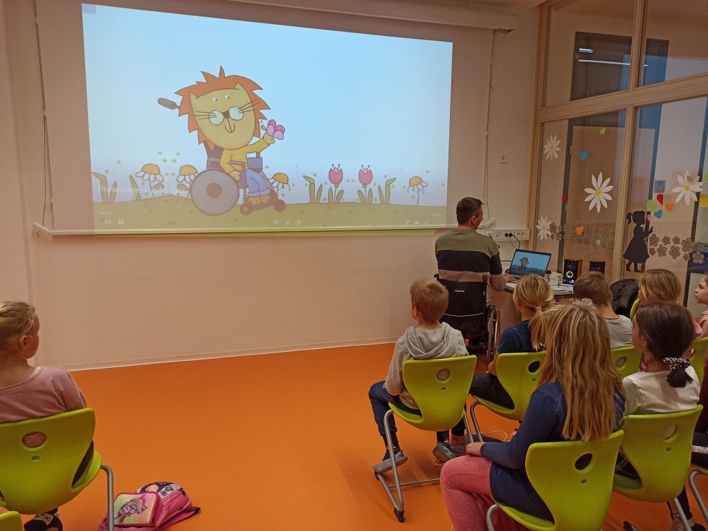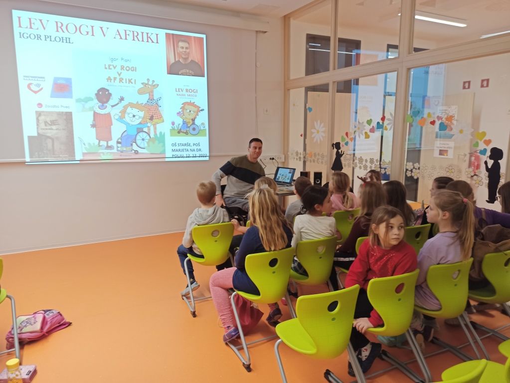 V prvem delu pravljičnega večera smo gostili mladinskega pisatelja Igorja Plohla, ki je učencem najprej predstavil svojo življenjsko in pisateljsko pot ter slikanice o Levu Rogiju, nato pa smo ob posnetkih, ki jih je pisatelj posnel na svojem popotovanju po Afriki, spoznavali življenje na tej oddaljeni celini.