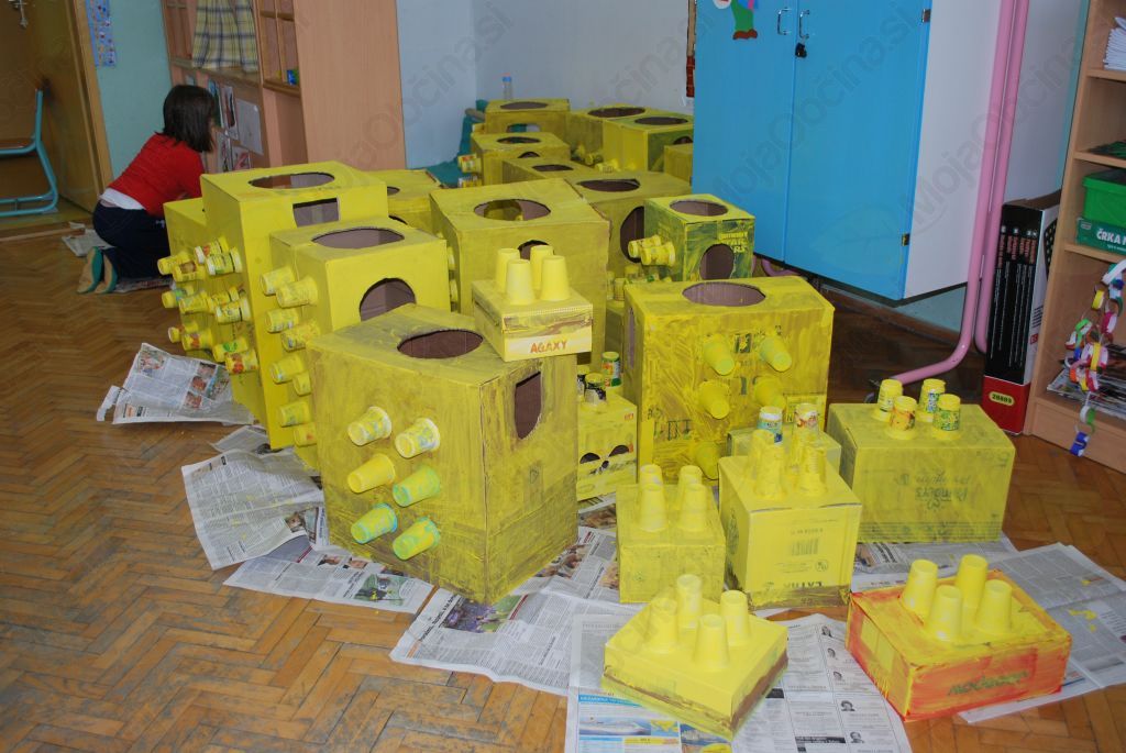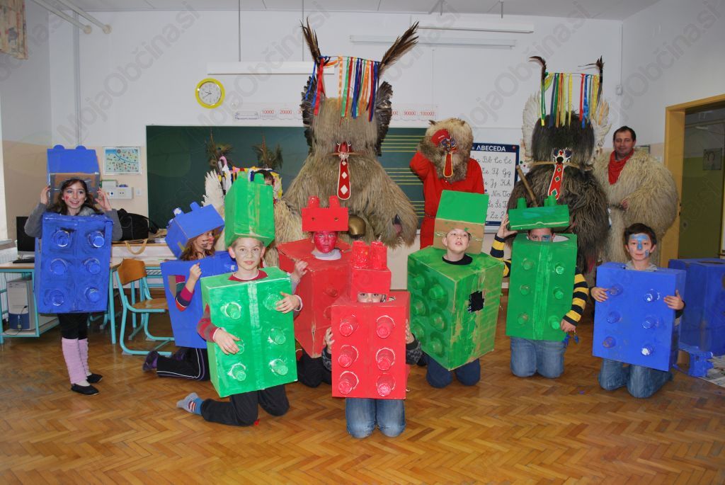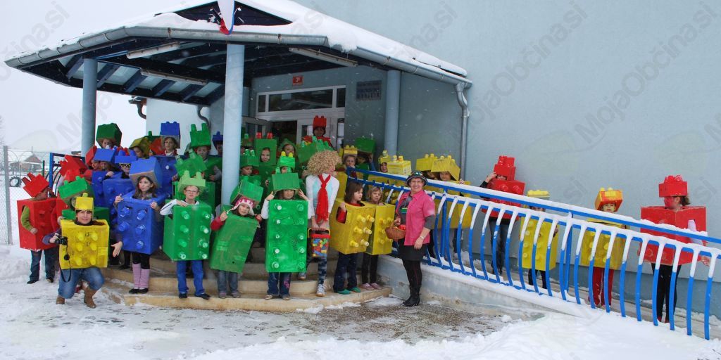 Vsebinsko so se oblačila navezovala na zelo priljubljeno vrsto igrač, ki jih prav gotovo najdemo pri vsakem od otrok – LEGO KOCKE. No, priznajmo, mlajšim so pri oblikovanju kartona doma čisto malo pomagali starši, v šoli pa učiteljice. Da ne bo pomote, pri barvanju so se vsi – učenci od 1. do 4. razreda – izkazali sami.