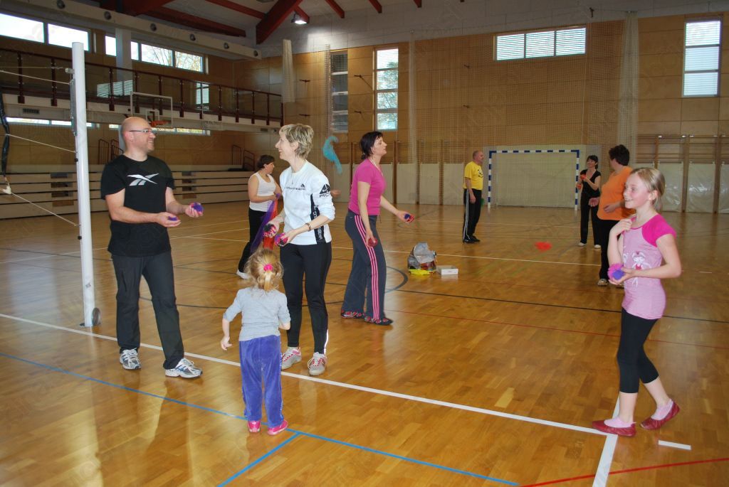 Učenci so starše naučili tudi osnove žongliranja s tremi žogicami; slednje je za učenje zelo dobrodošlo, saj poleg spretnosti rok in celega telesa enakomerno razvija obe možganski polovici. Osebe, ki dobro žonglirajo, imajo manj težav pri sklepanju in reševanju logičnih nalog. V zadnjem delu druge ure je ostal čas še za čisto pravo odbojko; zaradi razlike v višini igralcev so malo prilagodili le višino mreže.