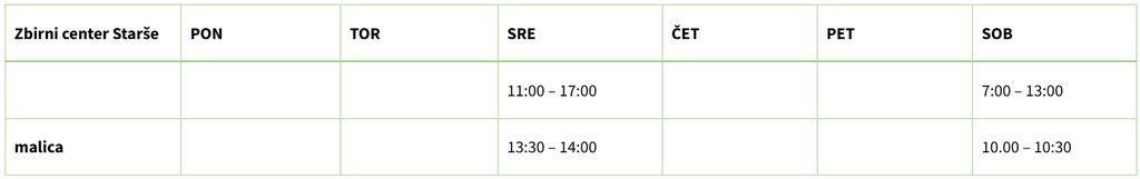 Obveščamo vas o spremembi delovnega časa zbirnega centra, ki deluje v sklopu občinskih storitev za obdobje od 01.11.2025 do 28.2.2026: