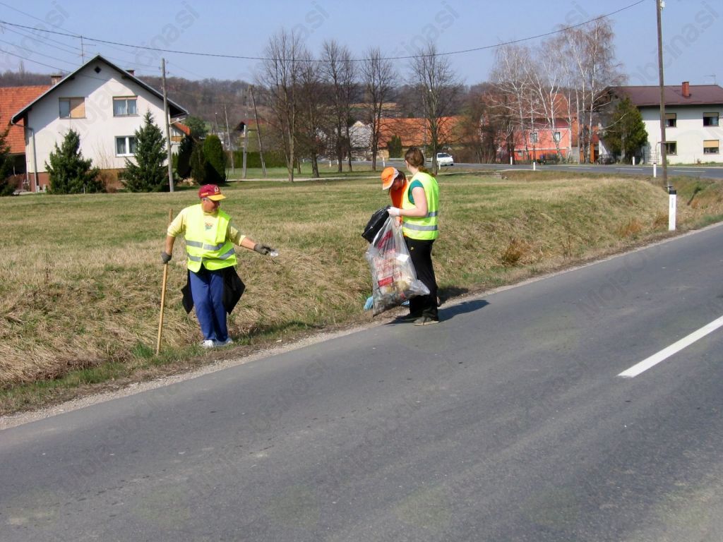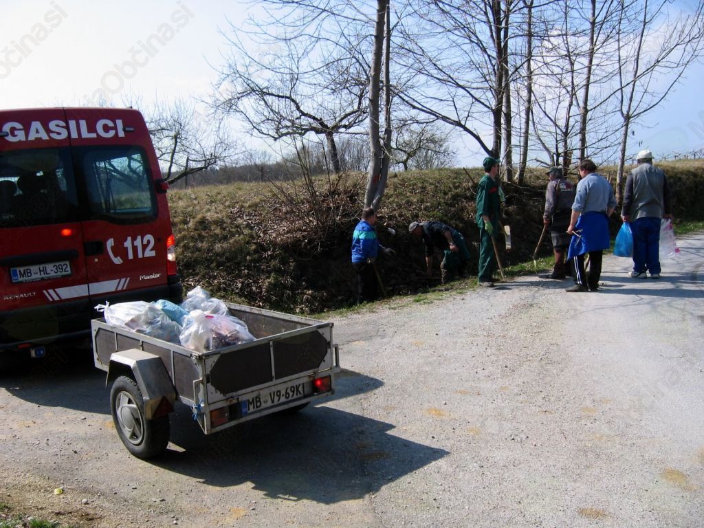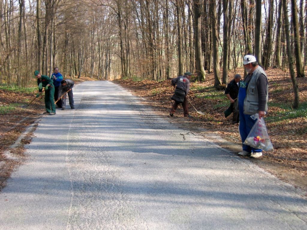 Na zbirnem mestu pred gasilskim domom se nas je zbralo preko trideset, tudi dva udeleženca s traktorjema, nekaj pa se jih je priključilo še kasneje, tako da je skupaj sodelovalo petintrideset krajanov. Razdeljeni v pet skupin smo se lotili dela na različnih koncih. Največja skupina, v kateri so bili tudi mlajši udeleženci, je pobirala razpršene odpadke ob cestah in ob Južnem jarku. Ostale skupine so v različnih smereh ob občinskih cestah poleg zbiranja razpršenih odpadkov čistile tudi obcestne jarke in propuste, odstranjevale na cesto segajoče veje, predvsem v klancih odstranjevale listje z roba ceste in na makadamskem delu poravnavale gramoz. Pri tem delu je bila dobrodošla pomoč dveh traktorjev.