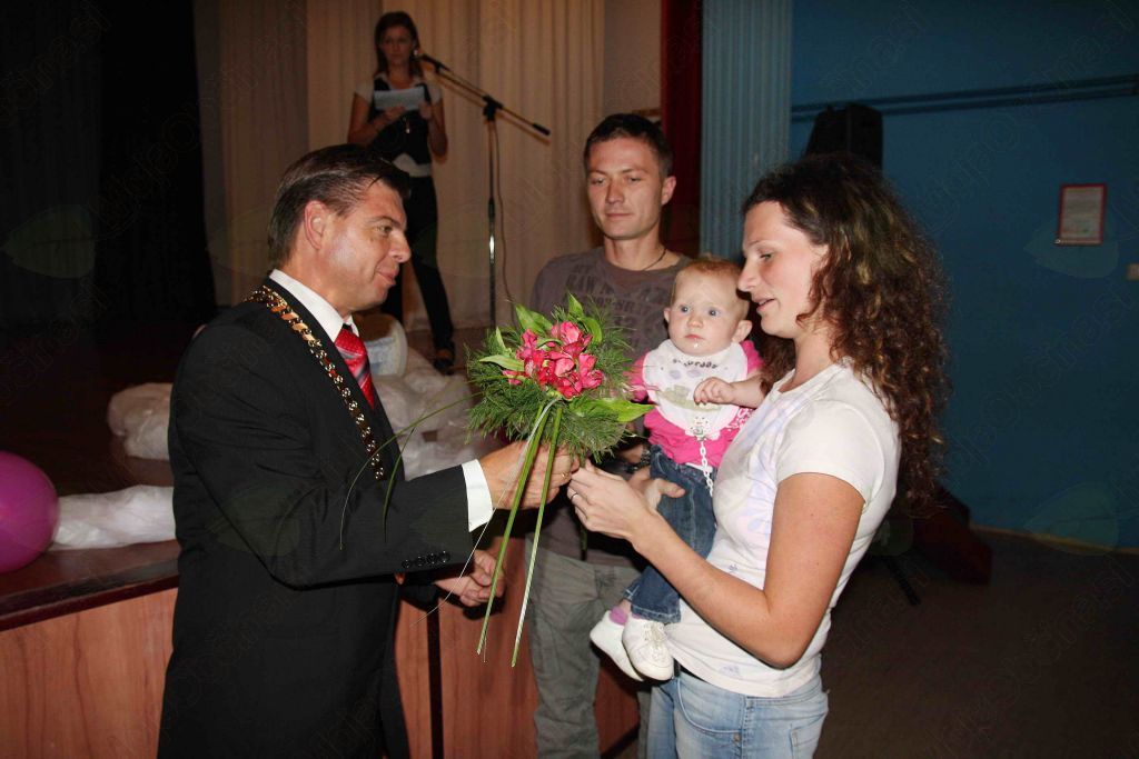 Srečanje, ki ga je vodila Tatjana Padovnik, se pričelo z nastopom otrok iz Vrtca pri Sv. Trojici. Pod vodstvom vzgojiteljic sta nastopali dve skupini, ki sta zapeli vsaka po eno pesmico. Starše z dojenčki je nagovoril župan Darko Fras, ki je med drugim dejal: »Veselje in čast mi je, da lahko staršem v imenu občine, čestitam ob rojstvu otroka, ki se vam je rodil v obdobju od lanskega sprejema dojenčkov. Občina si prizadeva, da bi na simboličen način pomagala družinam, ki so se odločile za rojstvo otrok. Mi se zavedamo, da moramo otrokom omogočiti varstvo in šolanje, vendar največje breme pade na starše. Bon za 150 evrov, ki vam ga bomo izročili, je le simbolično priznanje občine, k vaši odločitvi. Želim, da bili otroci, kakor starši zdravi in zadovoljni občani. Lahko rečem, da mi je to srečanje z dojenčki in starši najlepši dogodek mojega županovanja.«