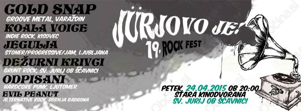 Letos bo tradicionalni rockfest JÜRJOVO JE! potekal že 19. zapored in sicer v PETEK 24. APRILA 2015 od 20:00 dalje, v kultni STARI KINODVORANI Sveti Jurij ob Ščavnici.