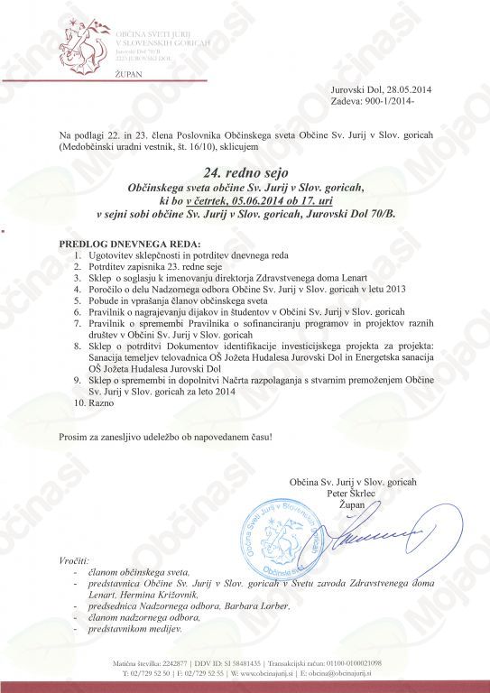 Na podlagi22. in23. člena Poslovnika Občinskega sveta Občine Sv. Jurij v Slov. goricah (Medobčinski uradni vestnik, št. 16/10), sklicujem
