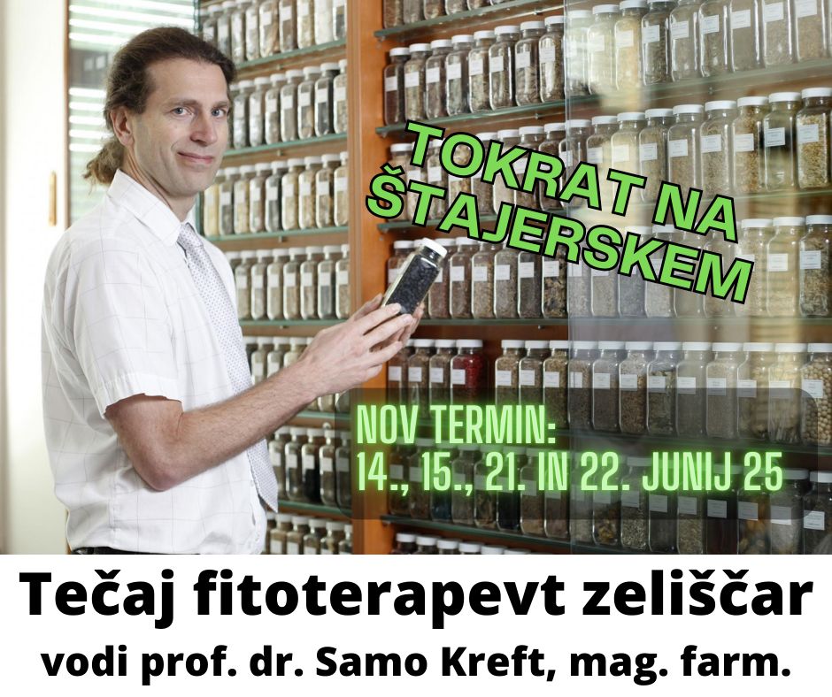 O INŠTRUKTORJU TEČAJA Samo Kreft ● magister farmacije ● doktor farmacevtskih znanosti ● redni profesor za področje farmacevtske biologije na Fakulteti za farmacijo Univerze v Ljubljani ● 14 let član "Odbora za zdravila rastlinskega izvora" pri Evropski agenciji za zdravila ● mentor specializacij iz farmakognozije pri Lekarniški zbornici Slovenije ● redni gost na TV ● so-urednik knjige "Sodobna fitoterapija" (700 strani A4) ● so-urednik spletne strani Lačna Bučka (www.lacna-bucka.com)