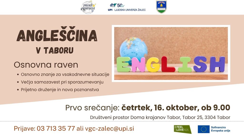 Brezplačni tečaj angleščine na osnovni ravni oz. prilagojeno stopnji znanja skupine.