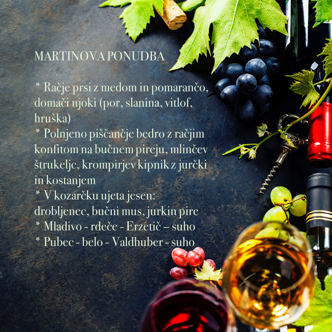Vabljeni v našo gostilno Pri mamici. Naš šef, Jernej Fonda, je skupaj s svojo ekipo pripravil posebno martinovo ponudbo, ki bo na voljo ves martinov teden, od 7. 11. do 12. 11. 2017: