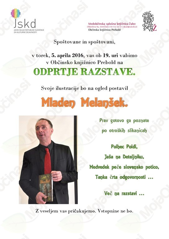 v torek, 5. aprila 2016, vas ob 19. uri vabimo v Občinsko knjižnico Prebold na ODPRTJE RAZSTAVE.