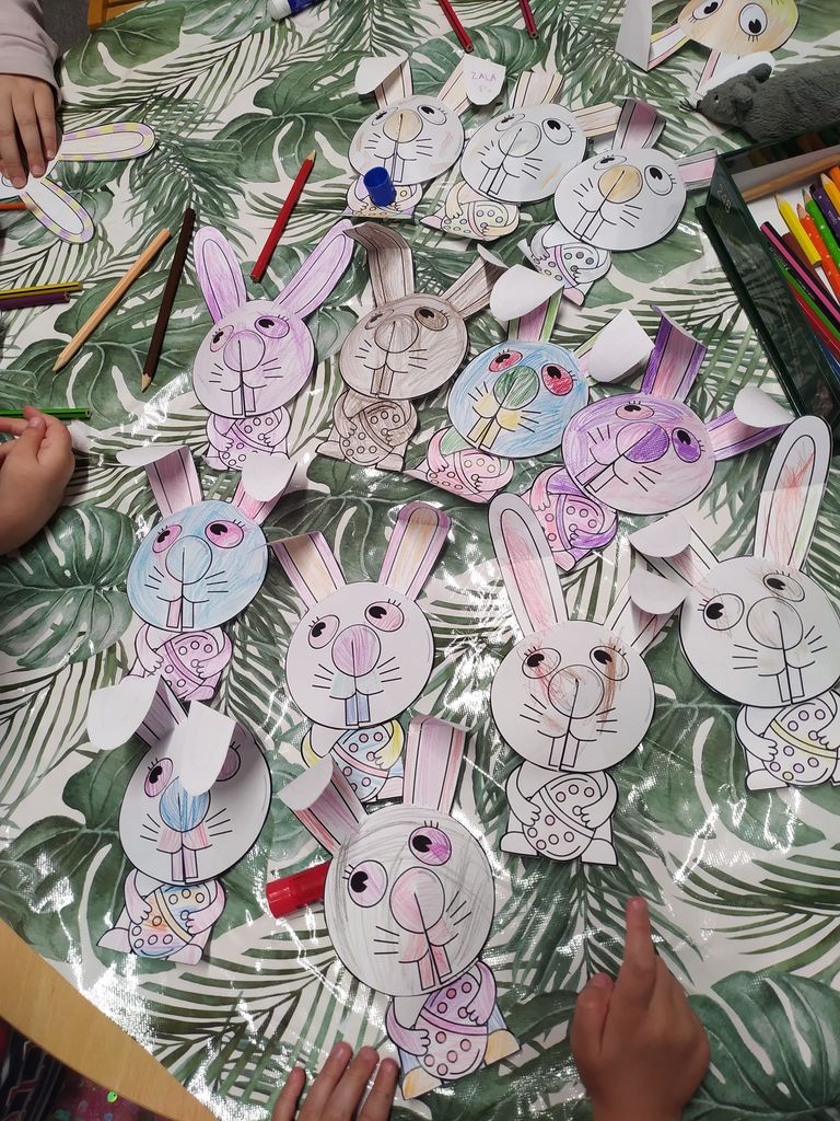 Na koncu so otroci rešili še nekaj šaljivih ugank in iz papirja naredili zajčka Skoka.
