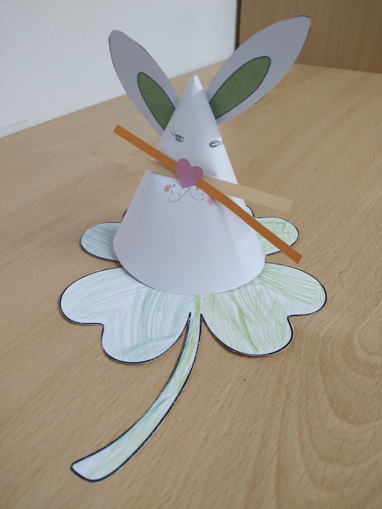 Pravljično druženje smo sklenili ustvarjalno. Izdelali smo majhno darilce za mamice, deteljico, ki jim bo prinesla srečo.