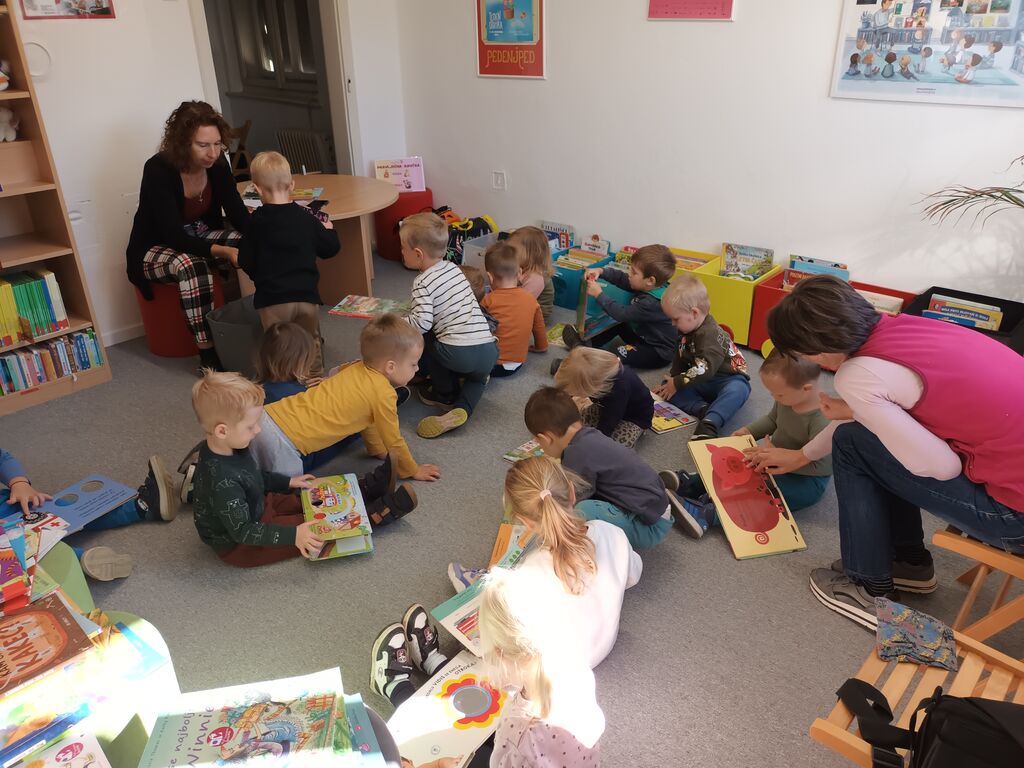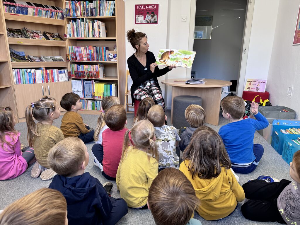 Pogovarjali smo se tudi o pomenu glasnega branja, saj od 8. septembra do 12. oktobra poteka mesec skupnega branja, ki spodbuja 10-minutno glasno branje in pripovedovanje. Strinjali smo se, da glasno branje ni le zabavno, ampak pomaga tudi pri razvijanju jezikovnih veščin in širjenju besednega zaklada. Tako sem jim knjižničarka prebrala pravljico o medvedu, ki se je naučil prijaznosti.