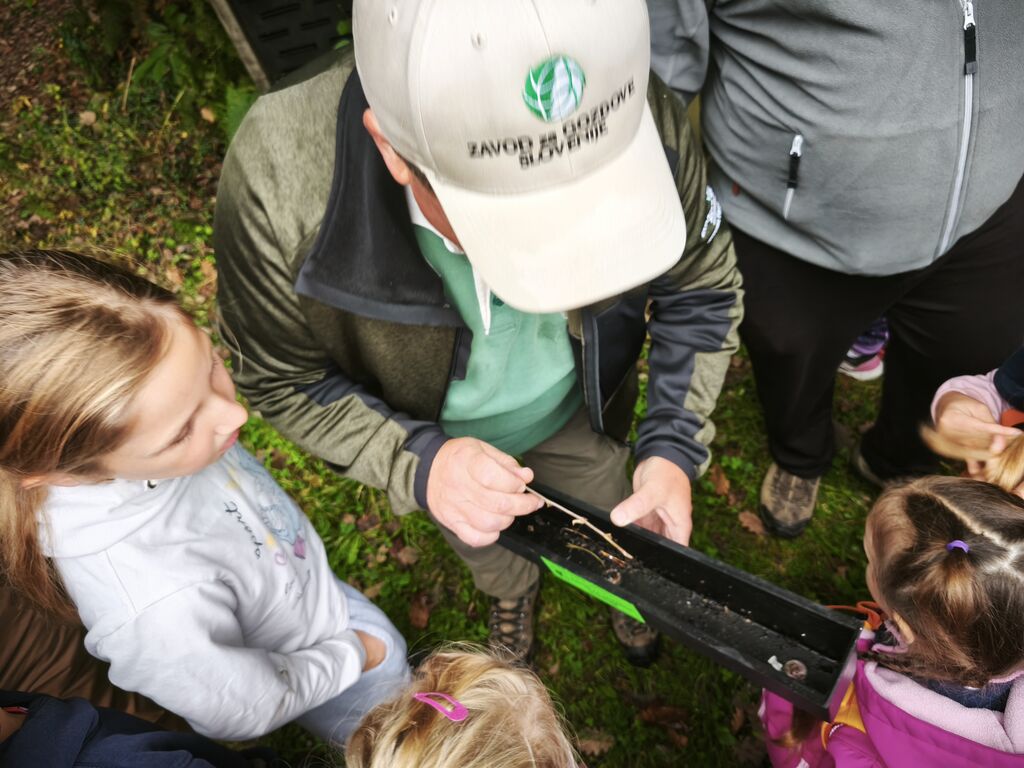Tako smo sodelujoče družine v soboto, 27. septembra 2025, povabili na zaključni izlet. Zbrali smo se na parkirišču pred Jamo Pekel, kjer nas je najprej sprejel gozdar s katerim smo odšli na skoraj 2 km dolgo gozdno učno pot, ki se nahaja v krajinskem parku Ponikovski kras. Na učni poti nam je gozdar skozi 10 informacijskih točk predstavil odnose v gozdu in naravi, različne vloge gozdov, gozdne ptice in živali, življenje dreves, gozdna tla, vpliv škodljivcev, predvsem podlubnikov (najbolj znana vrsta je smrekov lubadar), kjer nam je pokazal na kakšen način zatiramo te škodljivce. Zatiramo jih z lovljenjem v posebne pasti. V njej so vrečke s feromoni, ki privabijo lubadarje. Predstavil nam je tudi vpliv ujm na gozdove ter kras s kraškimi pojavi.