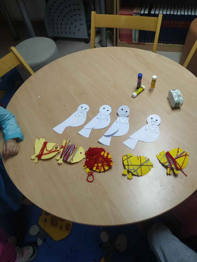 Da pa bo pomlad res prišla kar se da hitro, smo izdelali pisane ptice, ki so ene izmed prvih znanilk pomladi. Pomladi nam žal še niso prinesle, so pa poskrbele za sladke bombone, s katerimi so se vse maškare z veseljem posladkale.