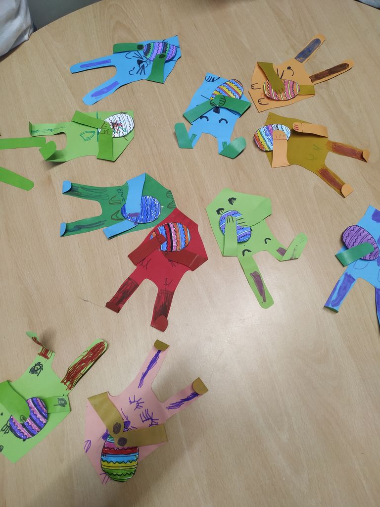 Otroci so povedali, kako so za praznik pekli potico, barvali jajca in nesli k žegnu. Pohvalili so se, da so pomagali pri pripravi različnih velikonočnih dobrot, še posebej dejavni so bili pri barvanju jajc oziroma pirhov, ki niso manjkali na nobeni praznični mizi. Nekateri so pirhe pobarvali z rdečo barvo, drugi raje z modro, rumeno ali zeleno, nato pa so jih še okrasili. Verjamem, da so z otroško domišljijo in ustvarjalnostjo ustvarili prave umetnine.
