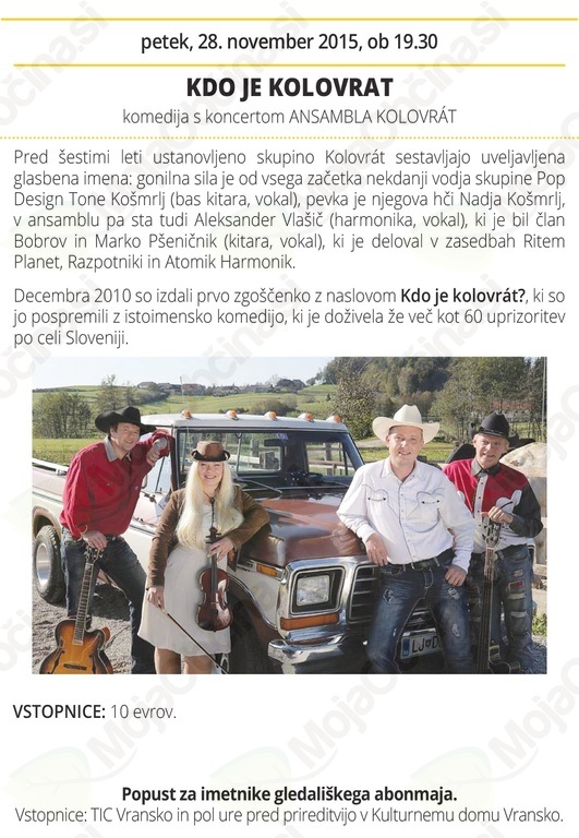 KDO JE KOLOVRAT, komedija s koncertom ANSAMBLA KOLOVRAT