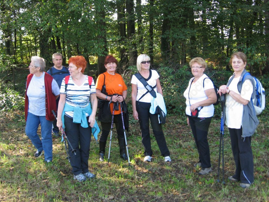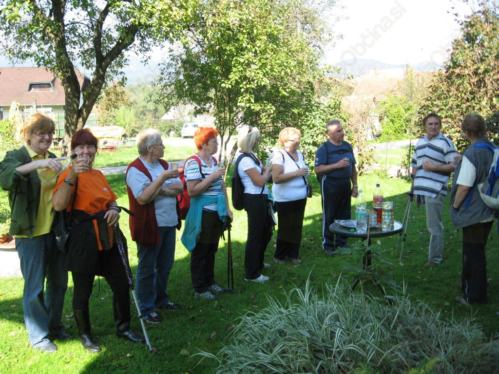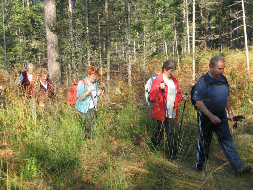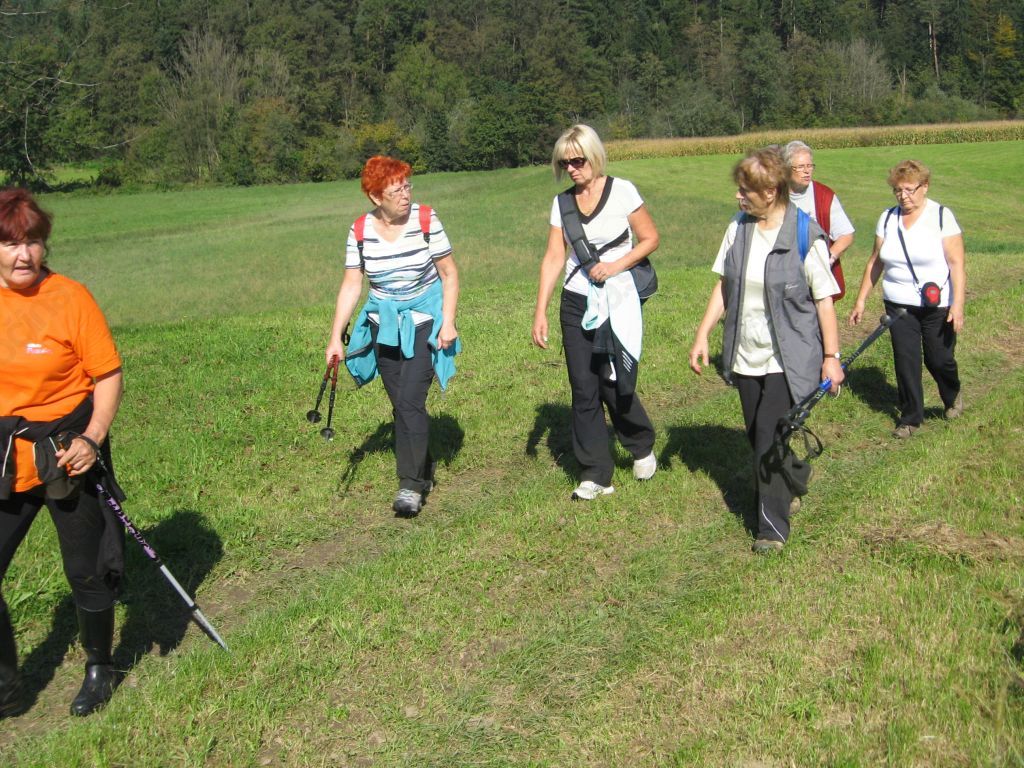 Zadnji torek v septembru, na lep, sončen dan, smo zvesti pohodniki upokojenskega društva zopet krenili na naš pohod. Tokrat nas je pot vodila iz Tabora po stari gozdni stezi do Grabnarjevih, potem mimo Urhovih, Žnidarjevih, čez polja "Devc" in preko glavne ceste do Gomilskega. Pri kmetiji Rančigaj smo krenili ob hmeljski žičnici do malega gozdiča v Borštih, pot nadaljevali ob njivah in travnikih do Gorjakovega, kjer smo si ob kratkem počitku pri Mihu in Jančki Kokole ogledali lani obnovljeno kapelo in prisluhnili "zgodovini " tega konca Kaple.