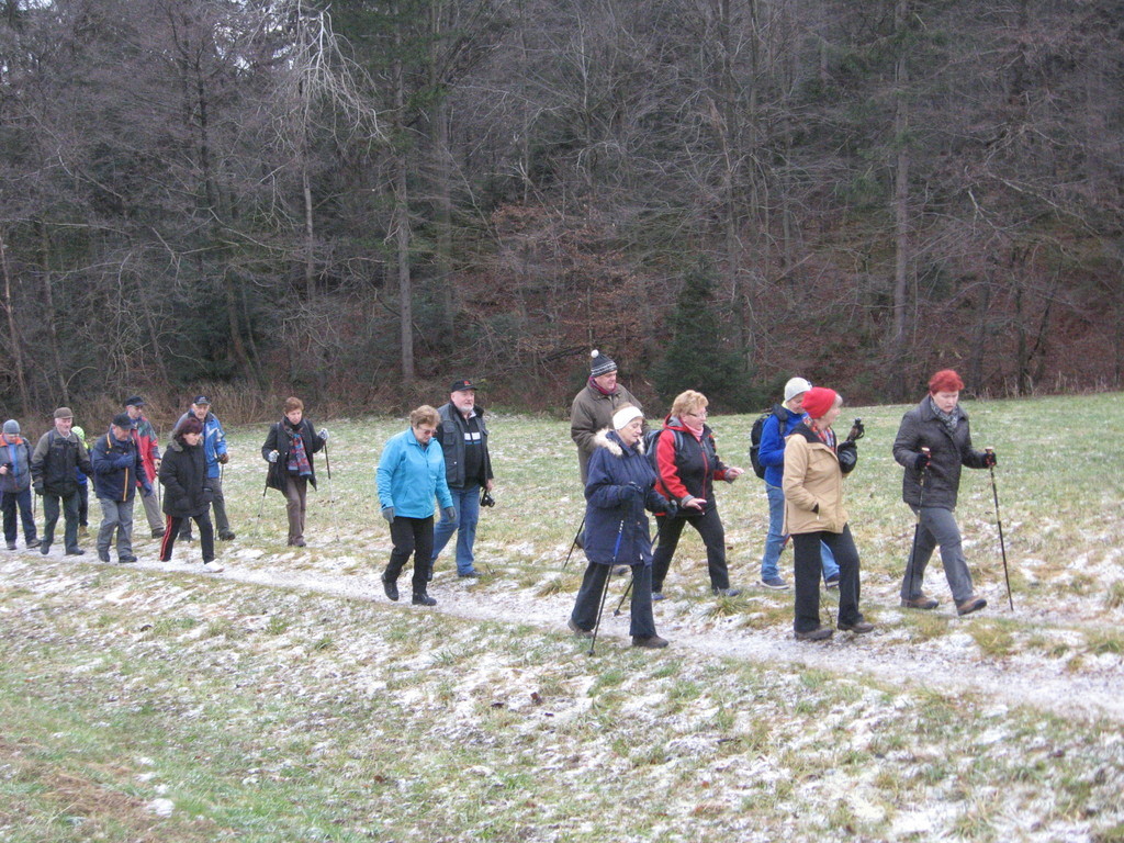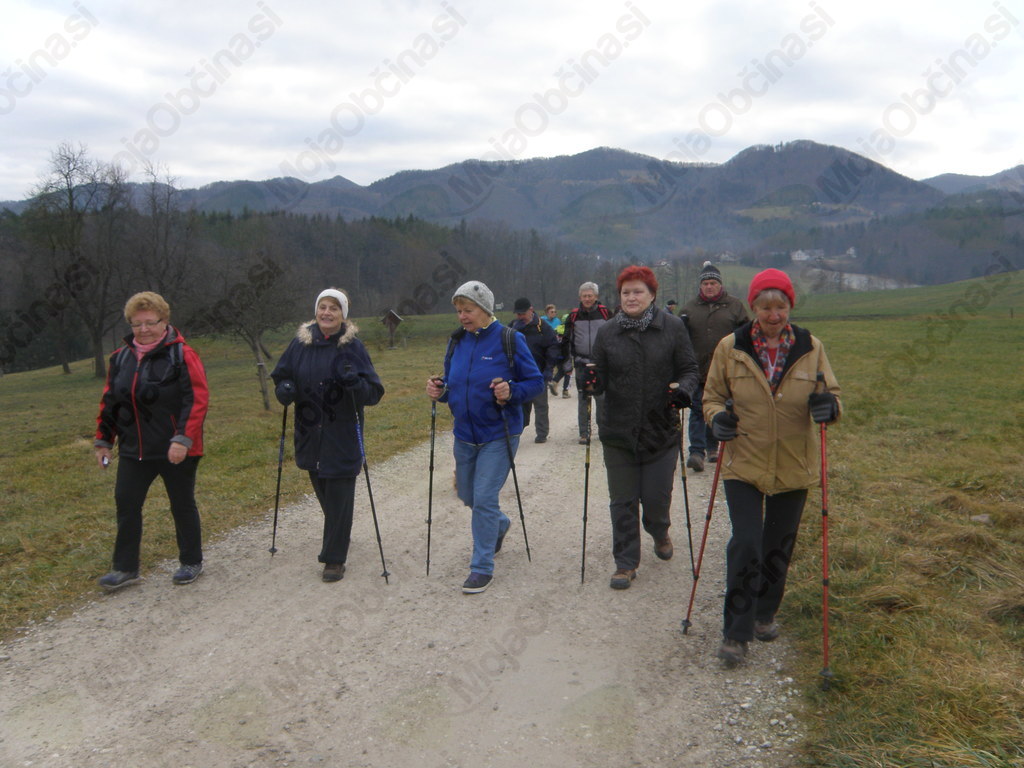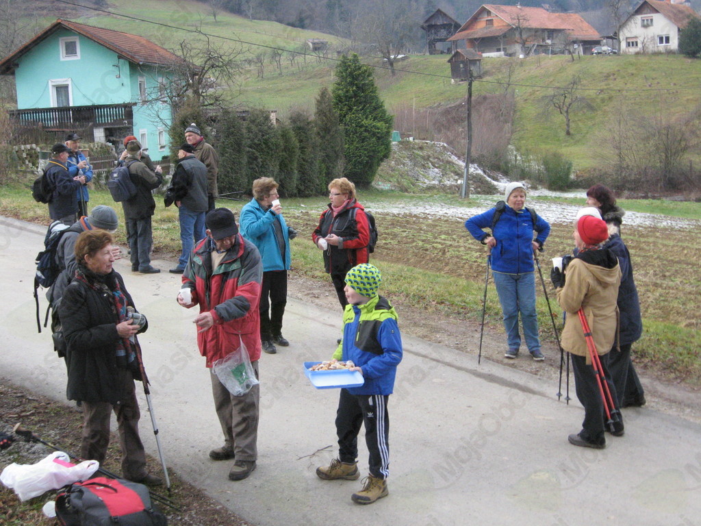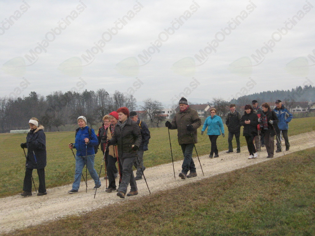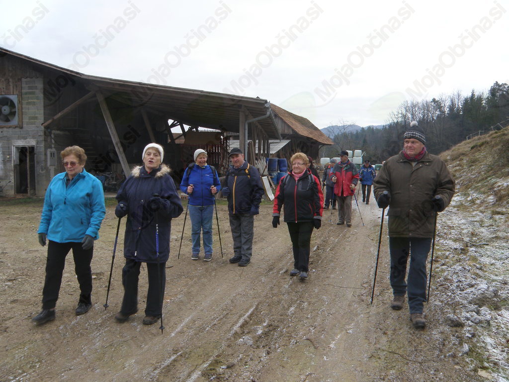 Ker je bilo vreme lepo, suho in brez snega, smo se odpravili na pohod, ki ga v slabšem, mokrem vremenu ali celo v snegu, ne bi mogli opraviti. Od zbornega mesta pri KZ Tabor smo krenili po stranski poti mimo cerkve, trgovine, proti Puši, račjaku, mimo domačij Marko, Namar, Martink in čez travnate Virte in skozi gozd v Pondor. Potem nas je pot vodila mimo Žagarjeve domačije in po kolovozu mimo Slaparjevega kozolca v Ojstriško vas k Brišn`k. Tu smo si privoščili malico, domače sladke pregrehe, se odžejali, nazdravili, si voščili za prihajajoče leto in tako prav silvestrsko zaključili naše pohajkovanje.
