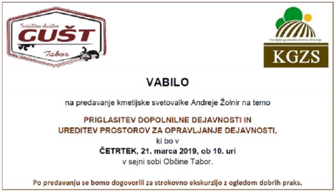 PRIGLASITEV DOPOLNILNE DEJAVNOSTI IN UREDITEV PROSTOROV ZA OPRAVLJANJE DEJAVNOSTI, predavanje