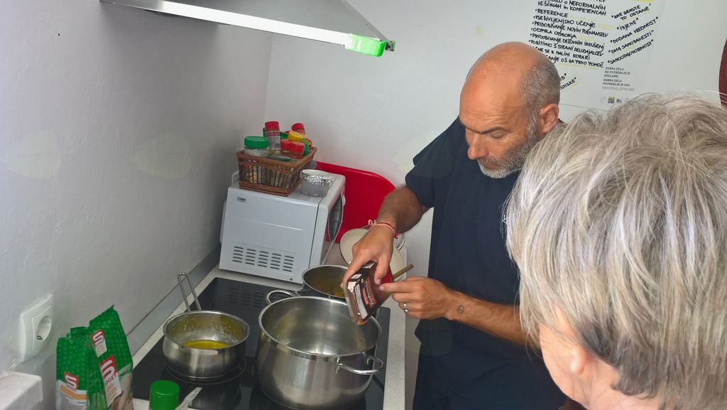 Skupaj smo pripravili indijsko paradižnikovo juho. Pa Sabdji, glavno zelenjavno jed iz paprike, paradižnika, korenja, cvetače, krompirja, graha in indijskih začimb, ki jo je Egon postregel skupaj z basmatim rižem. Na koncu, pa smo si privoščili kar dve sladici. Višnu murti, sladico iz prečiščenega masla – Ghi, z navadno in kokosovo moko ter mletim sladkorjem. Po izgledu je še najbolj spominjala na maso iz piškotov. Naš kuhar pa jo je postregel skupaj z rahlo pekočo sladico Čatni, s čilijem in bananami.