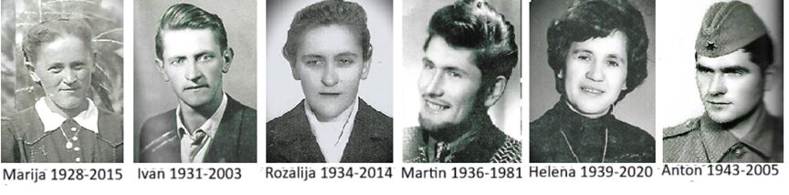 Prva je odšla od doma Micka, ki se je poročila z Jožefom Košico v Loke. Sledil ji je Ivan, ki se je poročil s Slavko Papež v Čeplje. Sestra Rozka se je zapisala šolskim nunam (pokopana na Brezjah), Tine pa je živel z družino v Šempetru. Lenčka se je leta poročila Stanetom Potokarjem v Višnjo Goro, najmlajši, Tone, je ostal doma na kmetiji in se leta 1967 poročil z Marijo Kolenc.