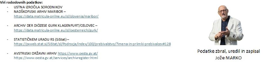 Na osnovi digitaliziranih podatkov iz razpoložljivih arhivskih knjig (krstne, poročne, mrliške) iz župnij Šoštanj, Prevalje, Kungota, Šentilj v Slovenskih goricah; onstran meje pa iz Pliberka (Bleiburg) in okoliških vasi ter iz Lipnice (Leibnitz) z zaselki in najdenega najstarejšega zapisa rodbinskega priimka iz leta 1648, ugotavljam, da je začetek rodbine Marko v SV. Florijanu pri Šoštanju.