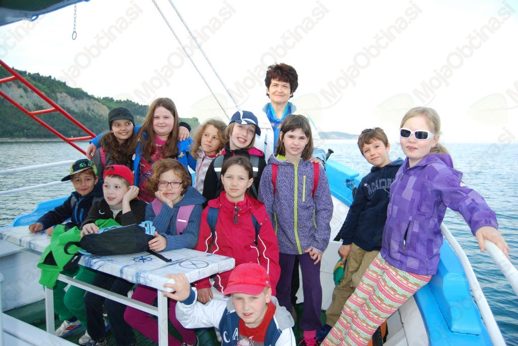 S palube ladje smo občudovali kopno. Videli smo lepa primorska mesta kot je Izola. V Simonovem zalivu pa nas je kapitan zapeljal k školjčišču, da smo si ga ogledali. Nato smo na obzorju zagledali Fieso … in po 1 uri plovbe na visoki pečini cerkev in strjene hiše. Bil je prelep Piran, obsijan s soncem. Med zelenim in rdečim svetilnikom smo zapluli v pristanišče Piran. Ladjo so privezali k pomolu in izkrcali smo se.