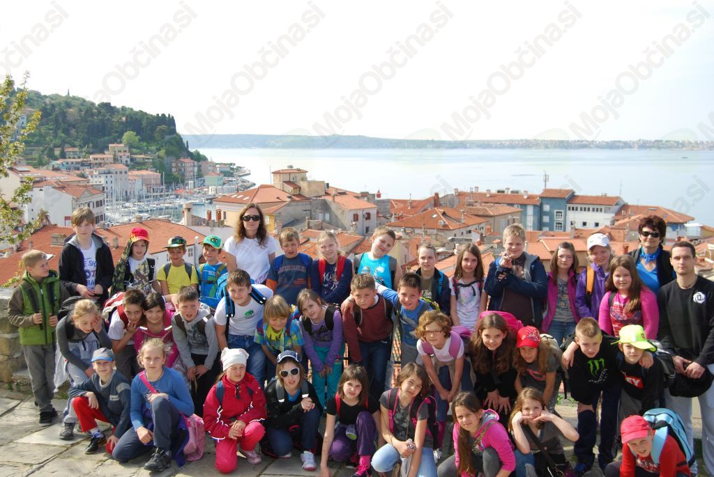 Z ladje smo zagledali veliko mesto z ogromno hišami. Bilo je mesto Piran. Najprej smo si ogledali akvarij, katerega simbol je morski konjiček. Videli smo veliko zanimivih morskih rib, školjk in rakov. Sprehodili smo se po znamenitem Tartinijevem trgu in po ozki ulici do piranske cerkve sv. Jurija. Z obzidja smo občudovali strnjene strehe mesta Pirana in prostranost Jadranskega morja vse do Italije.