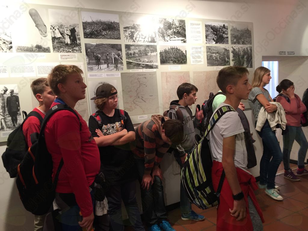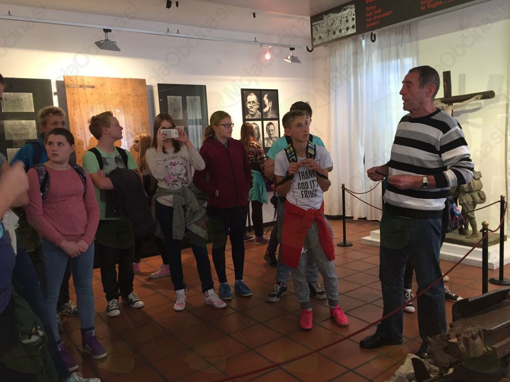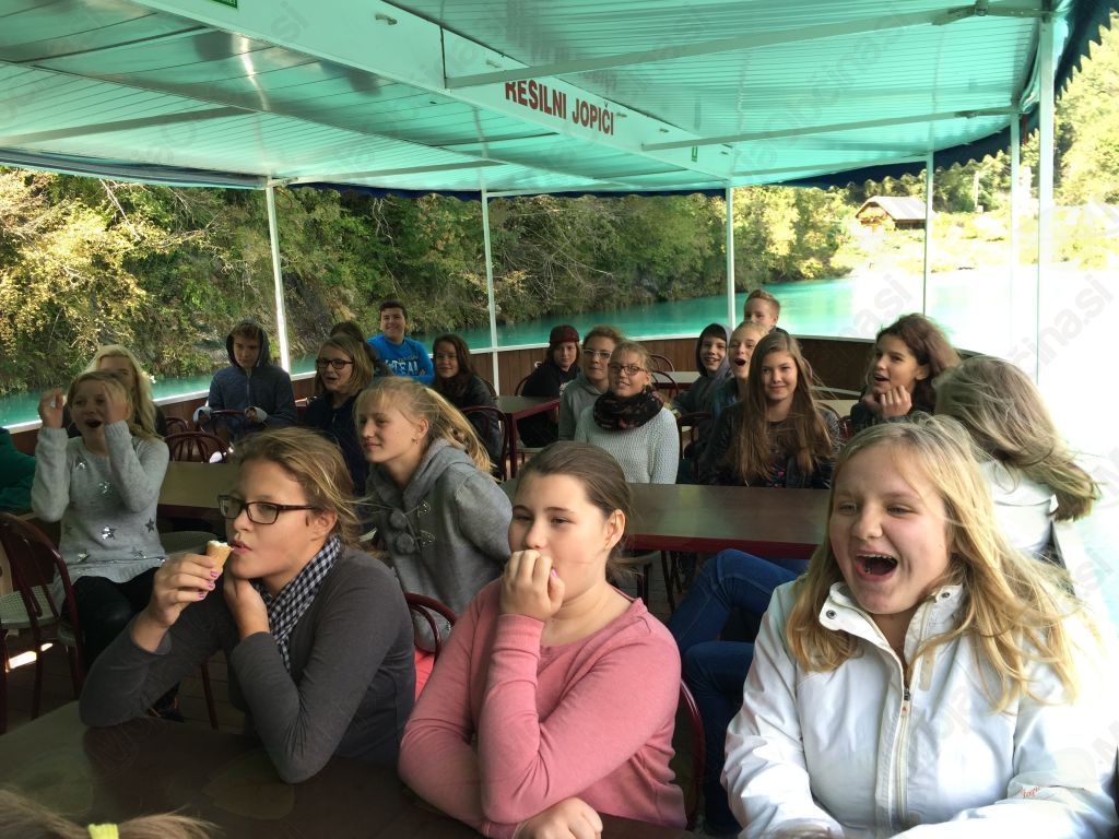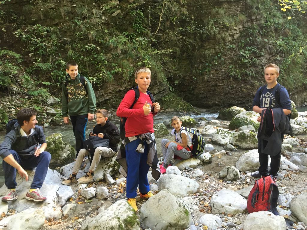 V četrtek, 1. oktobra 2015, smo se učenci 8. razreda odpravili na ekskurzijo v primorsko pokrajino. Ob sedmih smo pred šolo vzeli malico ter se z avtobusom odpravili na pot. Med potjo smo se imeli super. Ko smo po dolgi vožnji končno prišli do Mosta na Soči, nas je pričakal vodnik, s katerim smo se odpravili do razgledne točke. Ob poti nam je razlagal zgodovino zgradb in kraja. Nato nas je čakala plovba z ladjico po reki Soči ter kosilo. Med kosilom nam je vodič pripovedoval o legendah in nastanku reke Soče. Po kosilu je sledila »mornarska poroka«, pri kateri smo se precej nasmejali. Po kosilu in poroki nas je čakal sprehod do slapa Kozjak ter Napoleonovega mostu. Slap je bil zelo lep, še bolj pa pokrajina okoli njega. Po sprehodu je sledil še ogled Kobariškega muzeja – muzeja 1. svetovne vojne, ki je bil kar pretresljiv. Vodnik po muzeju nam je zelo dobro in živo prikazal 1. svetovno vojno ter njene grozote. Po ogledu muzeja smo se spet odpravili na dolgo pot domov, ki pa je bila vse prej kot dolgočasna.
