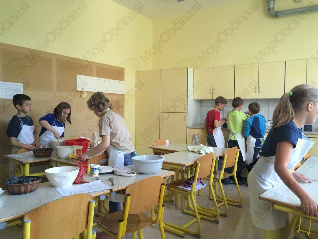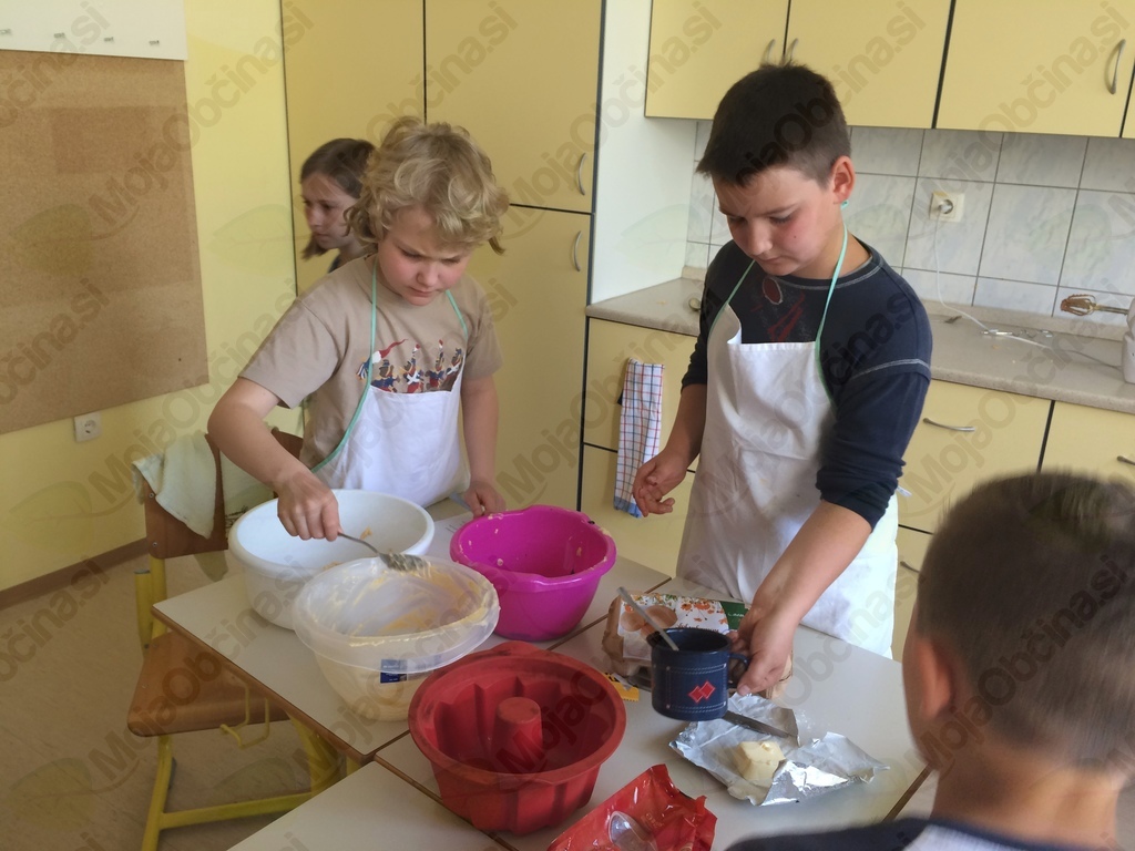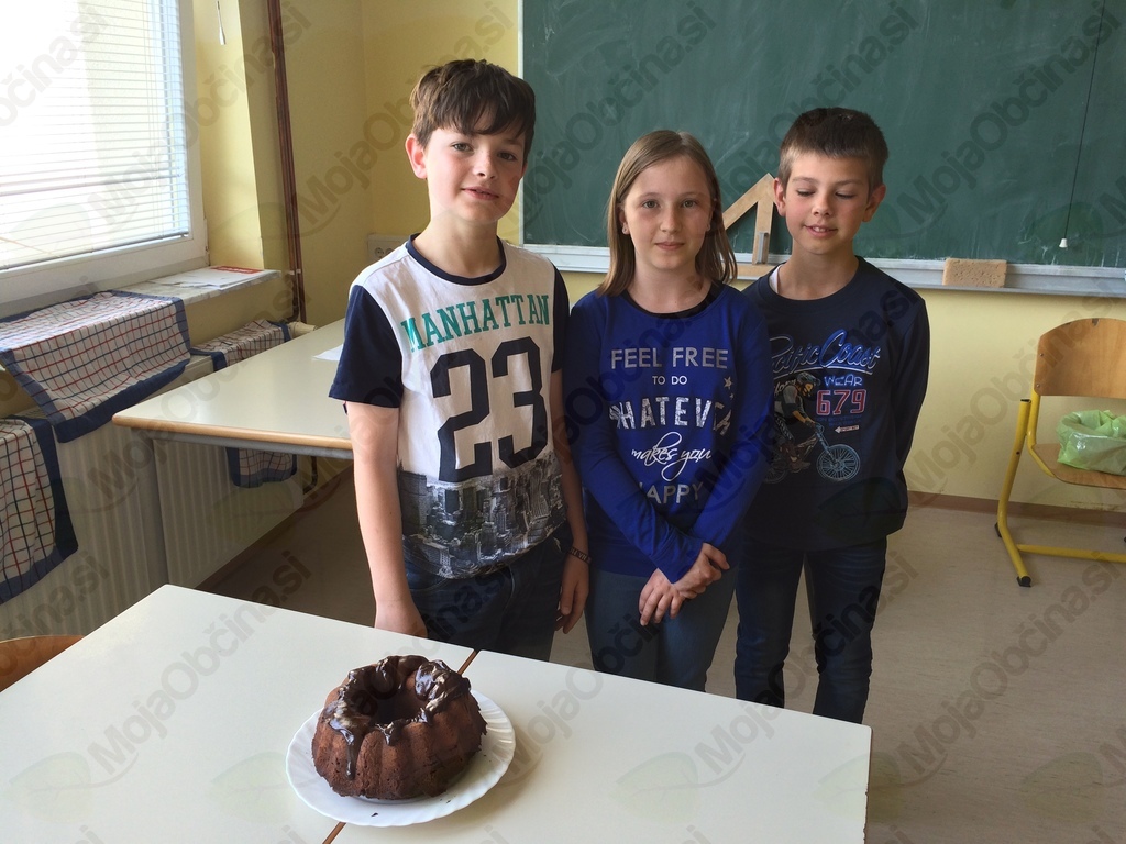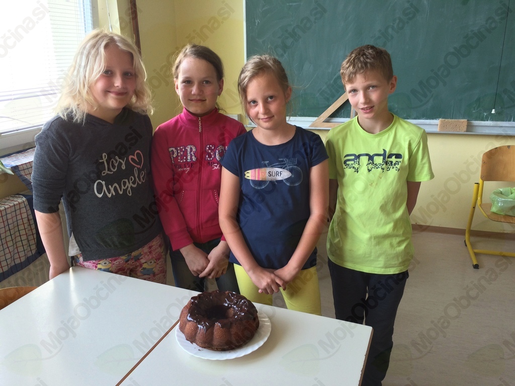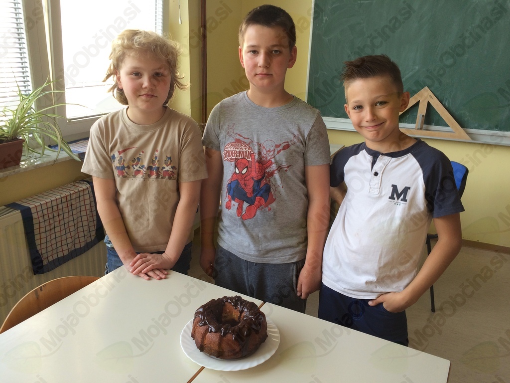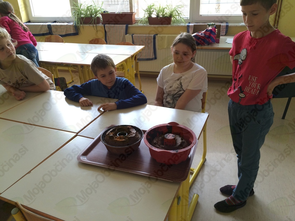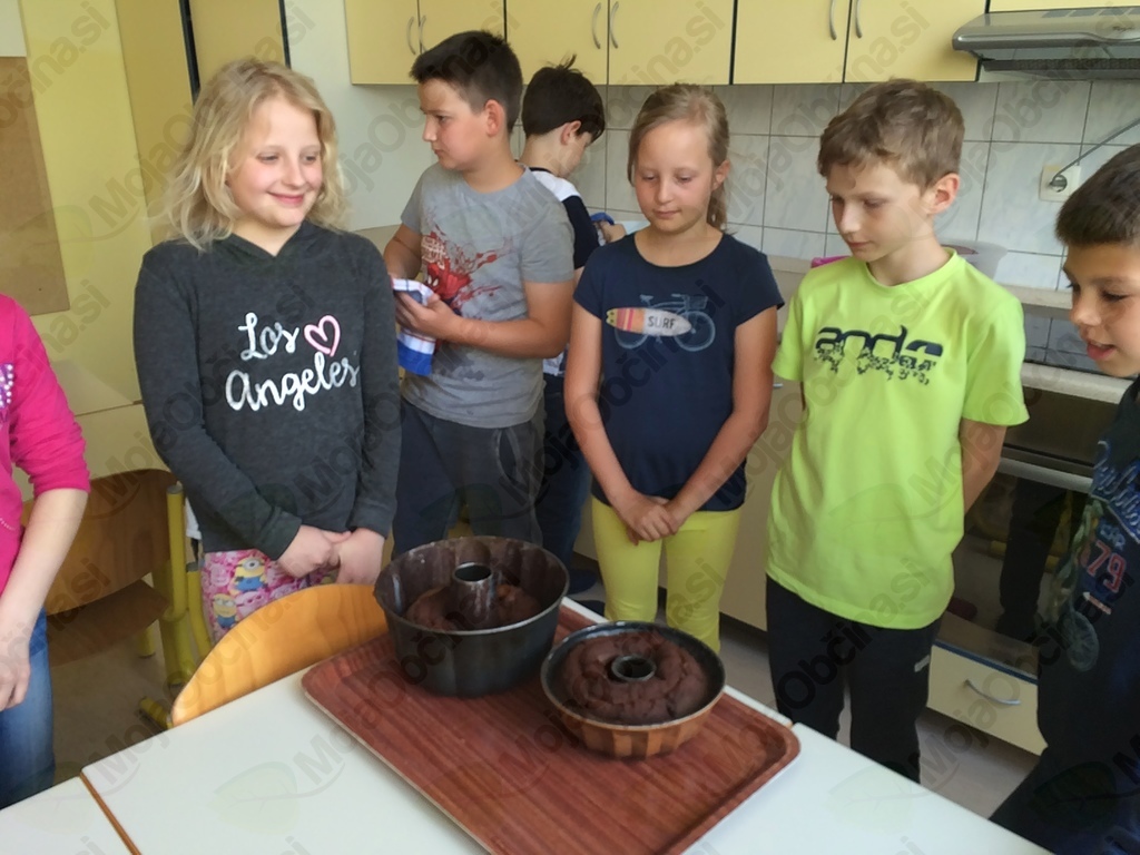 V ponedeljek, 23. 5. 2016, smo po malici začeli s peko marmornega kolača. Razdelili smo se v štiri skupine. Nato smo začeli s peko po receptu. Naša skupina se je lotila najprej tretjega koraka in nato so sledili še ostali. V tretjem koraku smo tehtali, nato mešali in prelivali testo. Postopki za izdelavo kolača so bili precej lahki. Najlažji je bil zadnji korak, saj smo maso vlili v model. Ko smo končali, smo kuharice prosili, da nam spečejo kolače. Odšli smo v razred in počakali, da se spečejo. Naša učiteljica Simona Jan je pripravila še čokoladni preliv, ki smo ga na koncu prelili na ohlajen kolač. Pojedli smo ga kot sladico po kosilu. Ostal pa je tudi še za naslednji dan. Bil je zelo dober.