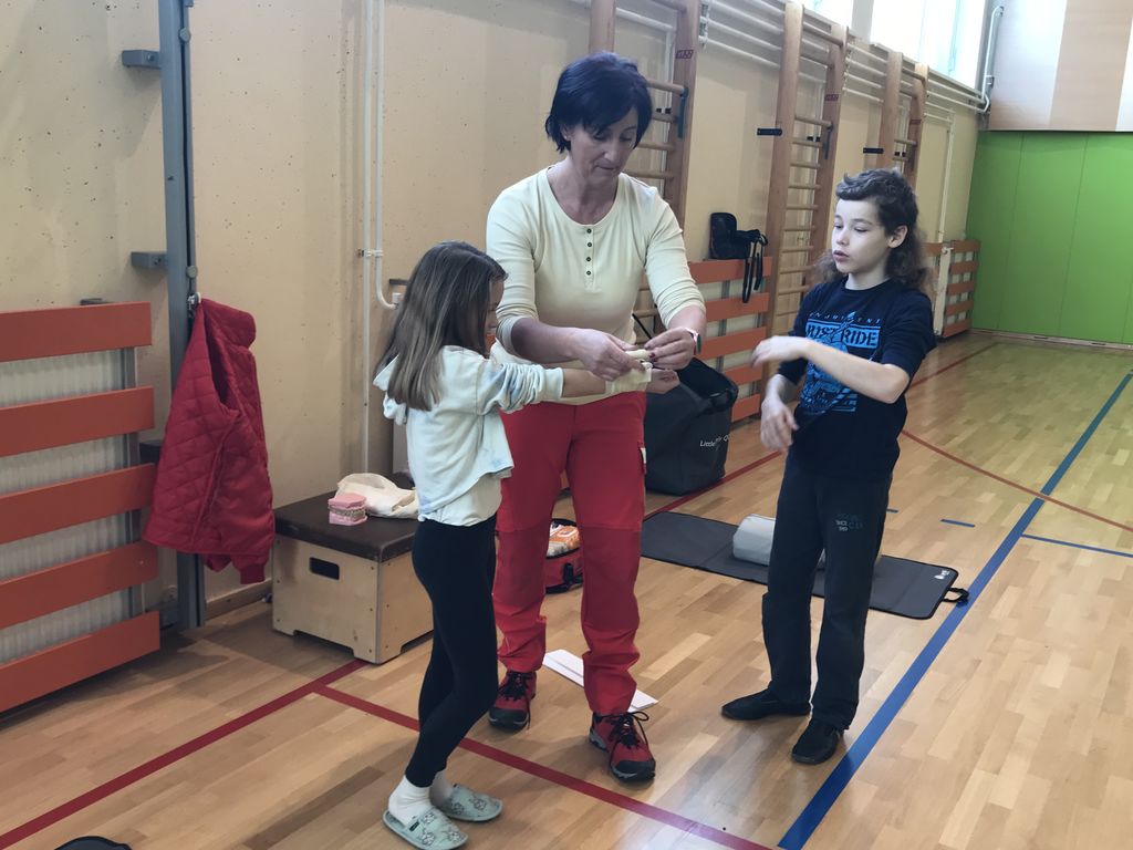Učencem je na njim primeren način predstavila, kako si lahko sami pomagajo pri manjših poškodbah. Kdaj pokličejo pomoč na številko 112 in kaj morajo povedati sogovorniku, ki na drugi strani sprejme njihov telefonski klic. Kaj storiti, če si izbijejo zob, zakaj je vnašanje svoje hrane v šolo lahko zelo nevarno za nekatere učence, ki imajo alergijo in še veliko drugih zelo koristnih informacij, ki jih bodo lahko uporabili v svojem vsakdanjem življenju in s tem pomagali sebi in drugim.