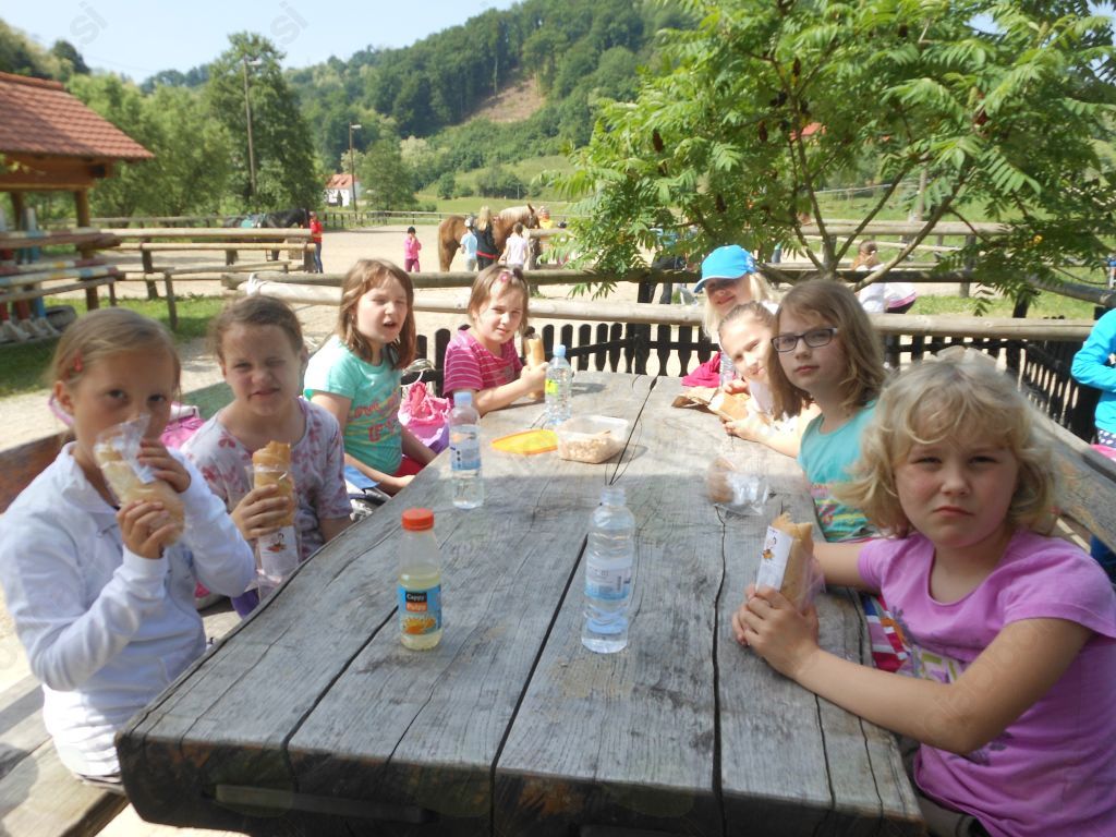V Rogatcu smo najprej odšli v konjeniški klub. Tam smo si ogledali vse konje, nato pa smo jezdili. Potem smo se odpravili v Muzej na prostem, kjer je 13 zgradb. Najprej smo šli v trgovino z domačimi izdelki, nato smo polstili volno in si naredili kroglico za ogrlico. Odpravili smo se k čebelarju. Predstavil nam je čebele in izdelali smo si sveče. Odhiteli smo iz testa oblikovati žulike. Ko smo imeli prosti čas, smo se lovili po zelenici med brajdami. Vodička nas je poklicala in nam predstavila vodnjak na čapljo, staro trgovino, stranišče »na štrbunk«, svinjak, kozolec … Nato so nam razdelili v krušni peči pečene naše žulike. Takoj smo še mlačne pohrustali. Z avtobusom smo se odpeljali v Olimje na Jelenov greben na kosilo, po katerem smo si lahko izbrali sladoled po želji. Obiskali smo še trgovino spominkov. Potem smo s koruzo hranili košute. Odhiteli smo v čokoladnico, kjer smo poskusili čokolado in si še kaj kupili.