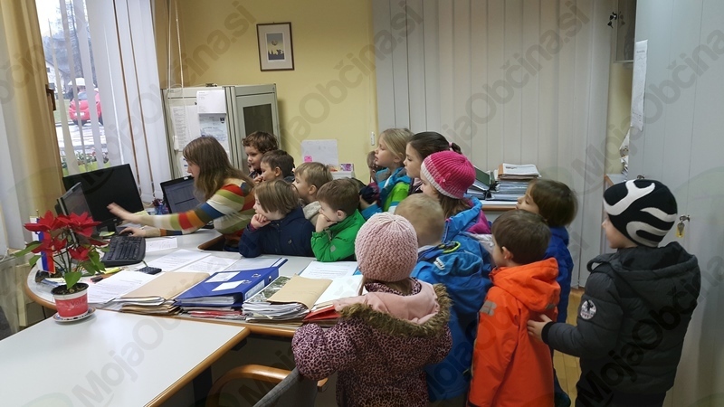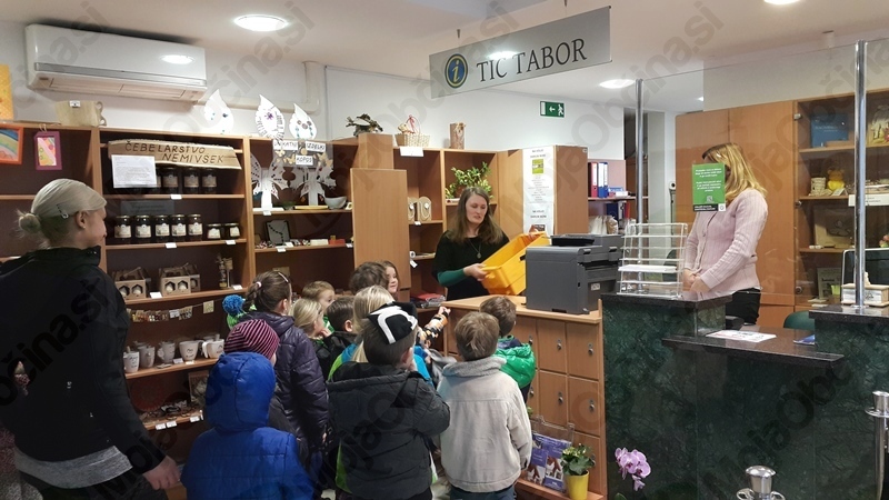 Pri spoznavanju zanimivih stvari o našem kraju pa vsekakor ne smemo pozabiti omeniti obiska na občini, kjer so nas sprejeli z odprtimi rokami. Ga. Ana nas je najprej peljala na ogled pošte (TIC Tabor), nato smo odšli v pisarno ge. Alenke, ki nam je z veseljem pokazala delo, ki ga opravlja. Za konec nas je čakal še obisk v županovi pisarni. Gospod župan nas je prijazno pozdravil in se z vsakim rokoval. Ogledali smo si njegovo pisarno, nato pa je sledila »slavnostna konferenca« v sejni sobi. Otroci so se z gospodom županom aktivno vključevali v pogovor ter ga spraševali vse mogoče stvari, ki so se porajale v njihovi domišljiji brez meja. Sejo smo zaključili s sadno pojedino. Vse doživeto bomo predstavili tudi našim prijateljem iz Litve. Imeli smo se krasno, zato še enkrat hvala vsem na Občini Tabor za tako lep sprejem.