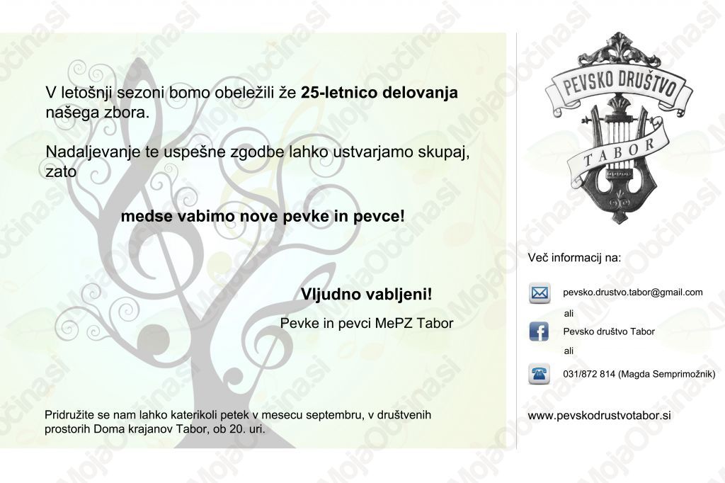 Nadaljevanje te uspešne zgodbe lahko ustvarjamo skupaj, zato medse vabimo nove pevke in pevce!