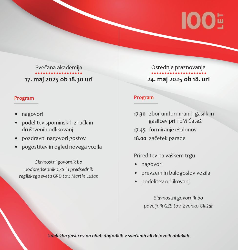 PGD Čatež pod Zapolazom letos proslavlja 100. obletnico delovanja društva.