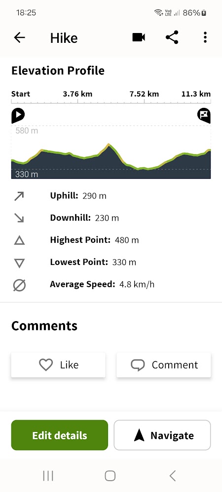 Potek pohoda je: Občine – Krušni vrh – Babna gora - Kozjak – Gorenje Kamenje - Dolenje Kamenje – Lisec.