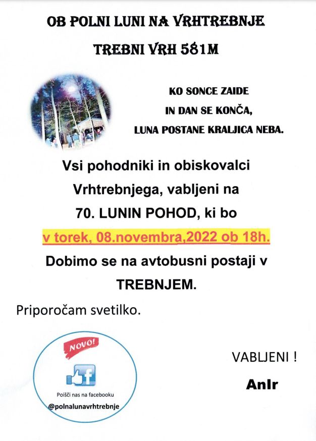 Kontaktni podatki organizatorja: Turistično Informacijski Center Trebnje, tic@trebnje.si, (07) 348 11 28.