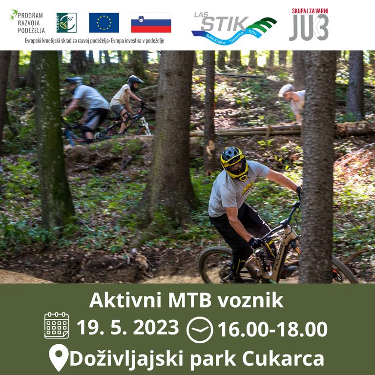 V okviru projekta Skupaj za varni jutri vas vabimo na delavnico: Aktivni MTB voznik z Žigo Pandurjem v petek, 19. 5. 2023, 16.00-18.00 v Doživljajski park Cukarca.