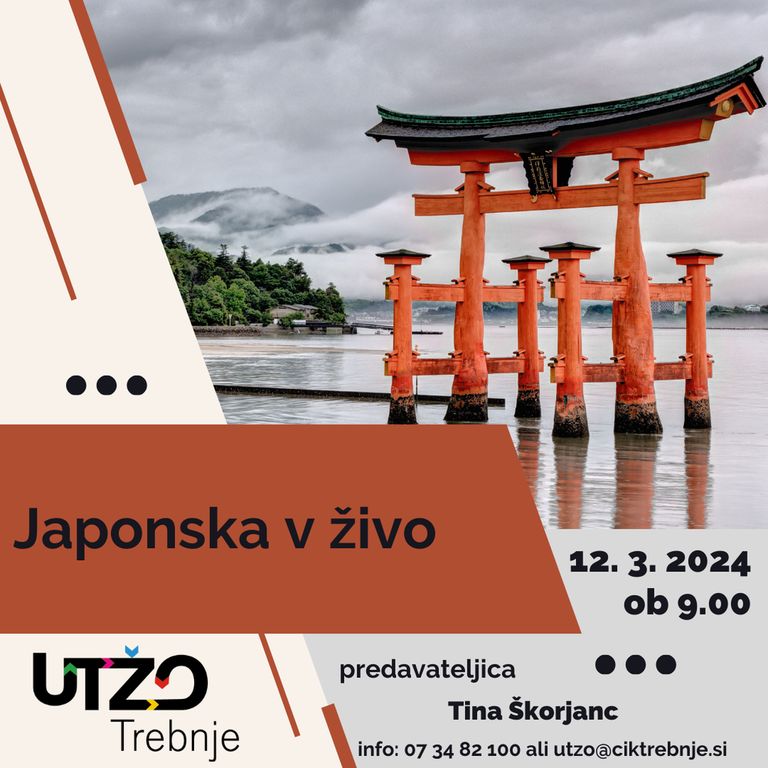 Na delavnici UTŽO Trebnje bomo tokrat potovali po Japonski oz. spoznali Japonsko v živo. Predstavila nam jo bo Tina Škorjanc, doktorica kemije, ki trenutno živi in dela na Japonskem.