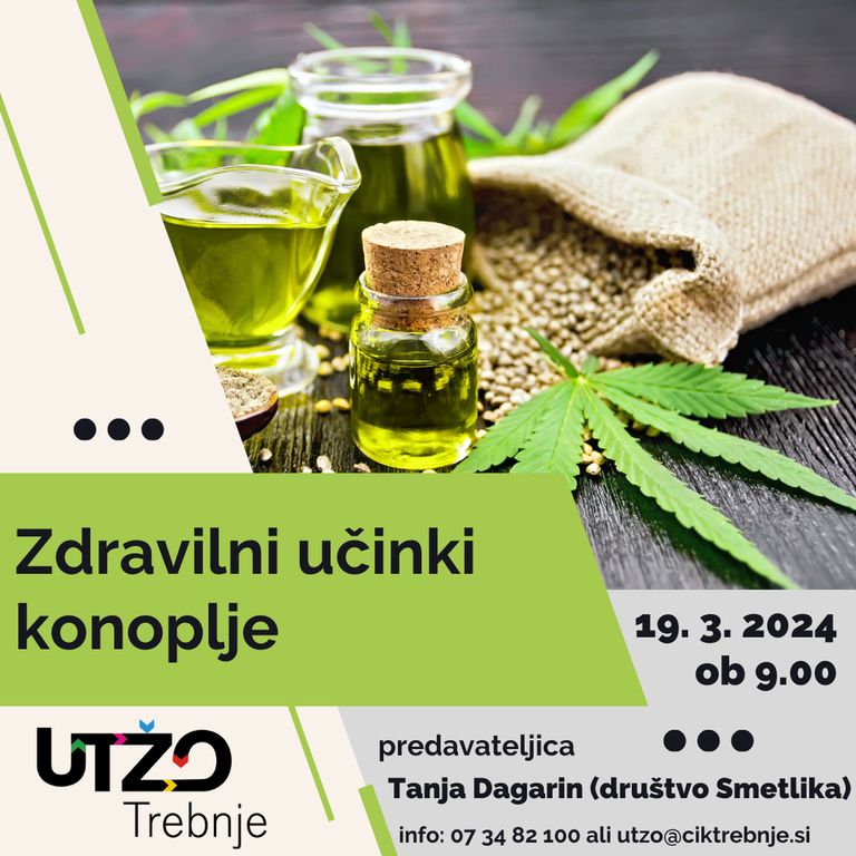 Na delavnici UTŽO Trebnje se bomo tokrat pogovarjali o zdravilnih učinkih konoplje. Čedalje več ljudi spoznava učinke konopljinega CBD kanabinoida, tokrat jih bomo spoznali tudi na naši delavnici.