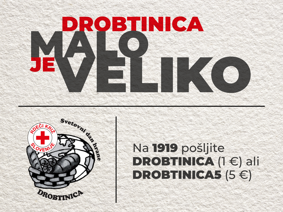 Lahko pa nakažete tudi s poslanim SMS-jem na 1919 DROBTINICA (1€) ali DROBTINICA5 (5€).